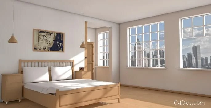 使用C4D制作时尚休闲风格卧室工程文件下载。